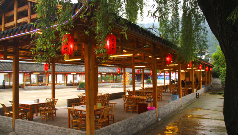 張家界武陵源大作坊美食城是一家集垂釣休閑,特色餐飲,夜市為一體的大型風味美食城!位于風景如畫的武陵源風景區(qū)區(qū)政府所在地,占地3000多平方米,可同時容納400多人就餐。這里也是景區(qū)內匯集土家美食,苗家美食的第一坊!美食城按純木四合院建造,內設酒作坊,豆腐作坊,臘味作坊,糍粑作坊,有垂釣區(qū),燒烤區(qū),菜品自助區(qū),客人廚藝展示區(qū),農產(chǎn)品展銷區(qū)等。酒作坊內聘請了民間煮酒大師現(xiàn)場煮酒,你有機會可以現(xiàn)場吃到熱乎乎的頭鍋酒,酒坊內有純米酒,包谷燒,高梁酒,有用野果泡制的各種果酒---燈籠酒,楊梅酒,彌猴桃酒等,更有特色的是把高梁酒放在正在生長的楠竹內,用竹內竹膜的香味把酒增香,十二天就把竹子砍下再放養(yǎng)三天就好了,客人要吃現(xiàn)場鋸竹筒酒吃!豆腐坊也是聘請民間老農現(xiàn)場用自制的石磨做豆腐,在這里你可以吃到真正有豆香味的原汁原味的石磨豆腐,和渣,菜豆腐,豆腐腦等豆制品!臘味作坊里有冬天用各種香料熏制的正宗湘西藏臘肉,臘豬頭肉,臘香腸,臘豬腳,各種臘制品臘野味等。糍粑坊每天在晚上人多用餐高峰時現(xiàn)場打滋粑,客人也可以自己參與打糍粑這個快樂的過程,想受過年時才有的熱鬧情景!在垂釣區(qū)里我們放養(yǎng)有很多野生魚類,有時間了你可以來這里休閑垂釣,得到的魚我們就會給你現(xiàn)場加工,有清沌的,紅燒的,青椒燜的,酸湯的,都很好吃哦。燒烤區(qū)里,我們高薪聘請了燒烤大師為你現(xiàn)場制做,你也可以自己動手,有烤羊排羊腿,各種串烤,烤全魚,烤全兔等,還有各種鐵板烤可以自己炒著吃!菜品自己選區(qū)里有各種山野菜,壇子菜,干菜,臘味等,有各種鮮活的魚類,河蛘,水魚,田螺,龍蝦等,有各種農家的土雞土鴨等,有各種鮮活的野味等你來享受美味呢!客人廚藝展示區(qū)里老板特設制地幾口大鍋, 很有特色的是, 你可以自己親自下廚, 酸甜苦辣任您自由調配 。 煮好了, 大家就圍著這“灶臺”合一的飯桌享受張家界的美食了。(張家界的三下鍋是很有特色的,是邊煮邊吃的, 只是這“三下鍋”是“大型三下鍋”而已。到張家界旅游,吃張家界的“三下鍋”是一種獨有的旅游體驗,到大作坊吃“大型三下鍋”,則更將會為你的旅程增添一份難得的回味。農產(chǎn)品展銷區(qū)里展示著當?shù)鼗蛳嫖鞯貐^(qū)最暢銷的農產(chǎn)品食品:正宗湘西鄉(xiāng)里臘肉,香腸,各種臘制品,洗車河霉豆腐,靈潔牌剁椒辣醬系列,菌油,正宗茶籽油,苗家酸湯,鄉(xiāng)里正宗葛粉,大壇湘西五糧液,竹簡敲敲酒,張家界茅巖霉茶,野生蜂蜜,高山葛粉,張家界第一山珍巖耳,葛根片等等! 武陵源大作坊美食城是武陵源景區(qū)規(guī)模最大,品種最多,環(huán)境最優(yōu)雅的休閑美食城。有各式小炒火鍋,岳陽特色燒烤系列,鐵板燒系列,鴨霸王系列,潮州特色砂鍋粥系列,涼菜醬菜系列,湘西地方特色小吃系列等。美食城整晚邀請著名的流浪歌手阿彪為你獻歌助興,并可同阿彪歌聲互動,在這里你可以放下一天的疲勞,拋開一身鎖事,度過美好的每一分鐘......武陵源夜市大作坊,是張家界旅游體驗的重要一站,它受到如此多的游客的熱捧,是因為,在這里能釋懷,是因為在這里,能體驗張家界旅游的文化內涵, 是因為在這里,能給你一個自由的空間......