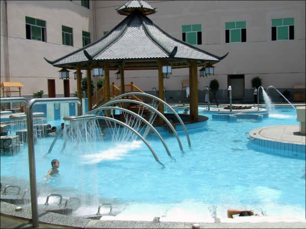 慈利縣萬福溫泉 萬福溫泉以福為文化為背景,建有四星級溫泉酒店(萬福樓),有140多間標(biāo)準(zhǔn)雙人房、單人房、豪華套房及董事套房;中、大型會議室、多功能宴會廳3間;以福文化為基礎(chǔ),在萬福溫泉的朝陽地帶建設(shè)40多個功能各異、大小不一、錯落有秩的室內(nèi)SPA池、露天溫泉池,另有貴賓休息廳、香薰屋、山頂溫泉沖浪、空中溫泉漂流等靜、動態(tài)溫泉養(yǎng)生娛樂項目,把福文化溶入到自然的溫泉沐浴中,使廣大游客在福文化的環(huán)繞中享受大自然獨特的恩賜;餐飲部擁有300多人的用餐大廳及包房,推出湘菜系列、突出地方名菜、土家風(fēng)味,集百家之長,創(chuàng)獨特風(fēng)味。另有KTV、桑拿、保健、美容、棋牌、臺球、健身房、購物中心等娛樂及其它配套設(shè)施。整個建筑別具一格,氣勢恢弘,功能完善,堪稱張家界溫泉旅游的又一大奇觀。