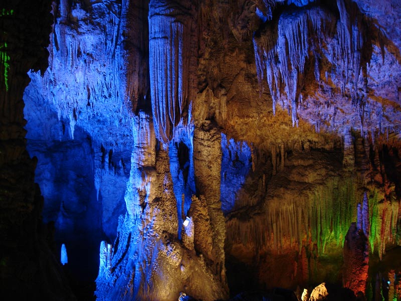 第三絕:九天洞美 九天洞美,美在自然,美在古樸,美在地下溶洞各種自然造型,美在各種色彩,美在世界珍稀。簡言之,九天洞勝狀,主要是洞穴美與色彩美,一句話,是自然美。當(dāng)探洞人王海然第一個在九天洞發(fā)現(xiàn)那些五光十色,造型各異,神奇乖巧的溶洞自然物時,他感到興奮,感到驚訝,感到鼓舞,感到自豪并且被這些美麗的自然物陶醉了,以至于廢寢忘食。當(dāng)你置身九天洞,你可以仔細(xì)欣賞那洞底暗河的流水,那紅色的河床、它們是那樣嘩嘩的流,水聲又是那樣的美。那淡紅、朱紅和鮮紅的河床、河水,有是那樣鋪彩爍金,色彩斑斕,五光十色,真叫人眼花繚亂,目不暇接,越看越神,越看越迷,看的如癡如醉。