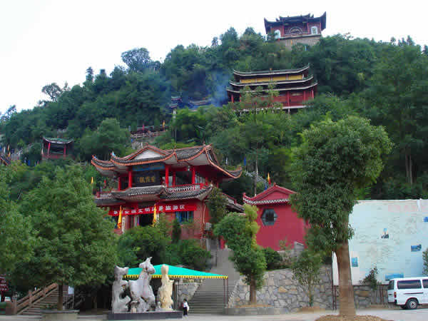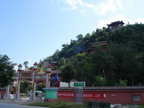 紫霞觀 紫霞觀始建于明朝嘉靖年間,近500年的歷史,在戰(zhàn)亂時(shí)期收到不同程度的破壞。紫霞觀是1992年因旅游事業(yè)的發(fā)展,教徒的信教,經(jīng)政府的批準(zhǔn),由各地的善男信女共同捐資,當(dāng)?shù)卣畵芸顢U(kuò)建起來的。道觀共有大小殿廟30余座,計(jì)5殿、3宮、2亭、2廟、1閣、八仙山、仙人足跡石、中華同心鎖等景點(diǎn)。中國著名書法家沈鵬先生為紫霞觀題寫了觀名,觀內(nèi)有國內(nèi)外著名書法家的題詞、碑刻等宗教文物,以及老子教祖講經(jīng)說法渡化圖一百余幅。