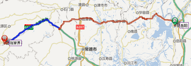 岳陽去張家界自駕車線路圖(全程部分高速):