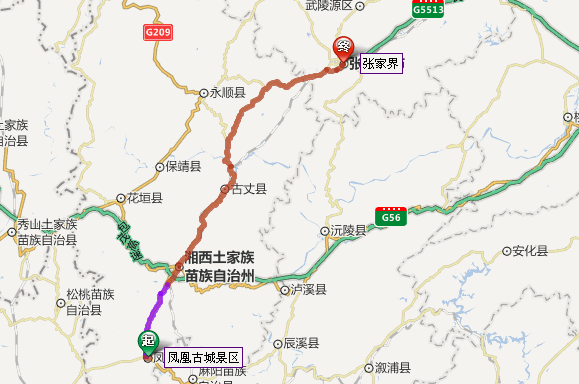 鳳凰古城去張家界自駕車(chē)線(xiàn)路圖