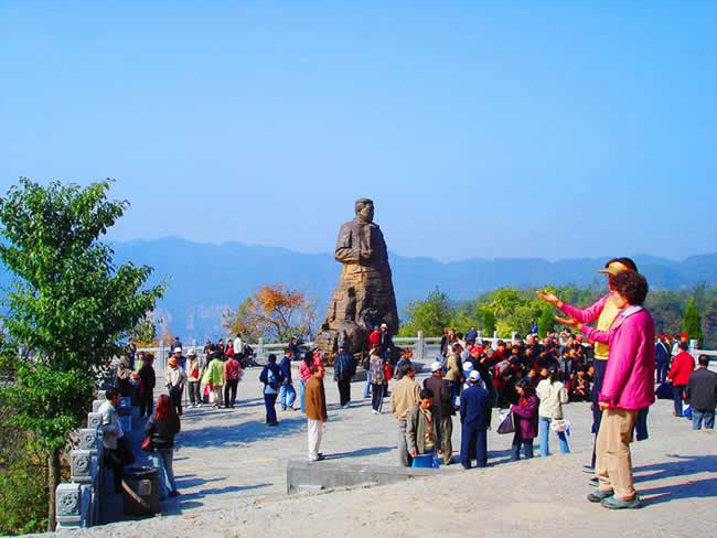 坐落在1200米的千層巖左側(cè)。公園內(nèi),屹立在“云青巖”上的賀龍銅像與大自然連為一體,形成獨(dú)特的藝術(shù)風(fēng)格。這是我國(guó)近百年塑造的最大的一尊銅像。神堂灣:神堂灣是一個(gè)神秘的天國(guó),一座綠色的迷宮,至今無(wú)人問(wèn)津。一個(gè)凹形深谷,四面是刀切般的絕壁,終日霧雨霏霏。向下層巒疊嶂,形成五級(jí)神堂,谷底深不可測(cè),被稱作“神秘的天國(guó)”。