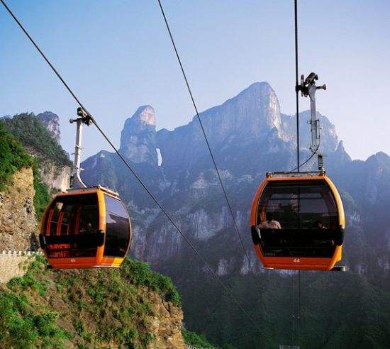 百龍?zhí)焯荩怪备卟?35米,運(yùn)行高度326米,由154米山體內(nèi)堅(jiān)井和172米貼山鋼結(jié)構(gòu)井架等組成,采用三臺(tái)雙層全暴露觀光電梯并列分體運(yùn)行,每臺(tái)次載客50人次,運(yùn)行速度3米/秒,三臺(tái)同時(shí)運(yùn)行每小時(shí)往返量達(dá)4000人次。百龍?zhí)焯莸男藿▽?shí)現(xiàn)“山上游,山下住”的目標(biāo),提供了交通保障,將袁家界天下第一橋、迷魂臺(tái)、天懸白練以及烏龍寨、楊家界等絕世美景從幕后推向了前臺(tái),并將天子山、袁家界、金鞭溪等精品旅游線路連為一體,解決了多年困擾景區(qū)的交通瓶頸問(wèn)題。